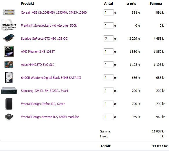 Det där är ju Komplett:s AMD Vision-paket... Jag skulle valt ett mindre, snyggare och tystare chassi och ett annat nätaggregat. Sedan hade jag nog tagit dubbla GTX460 istället för HD5830, vilekt blir dyrare men lite bättre