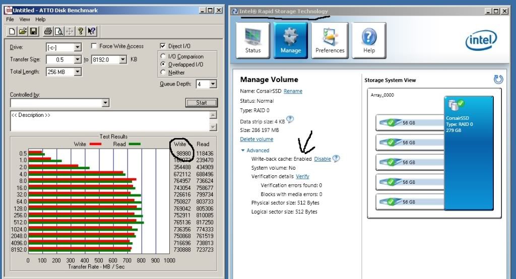 Några kanske sitter med 2 ssd i raid0 och förundras över kassa write siffror på 0.5k småfiler 13-20mb\s