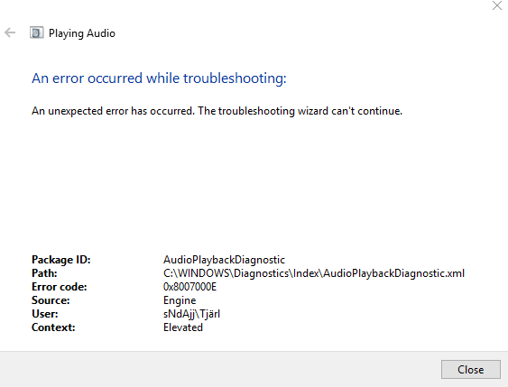 Jag kan inte felsöka mitt ljud, får bara någon felkod. Kan inte felsöka hela datorn, får felkoder där också.