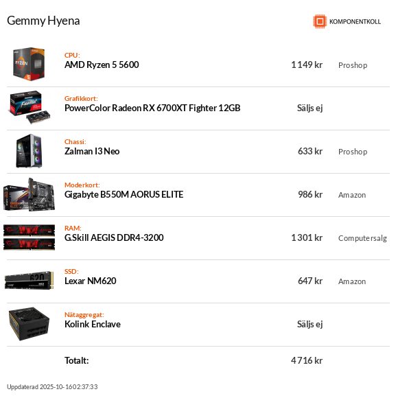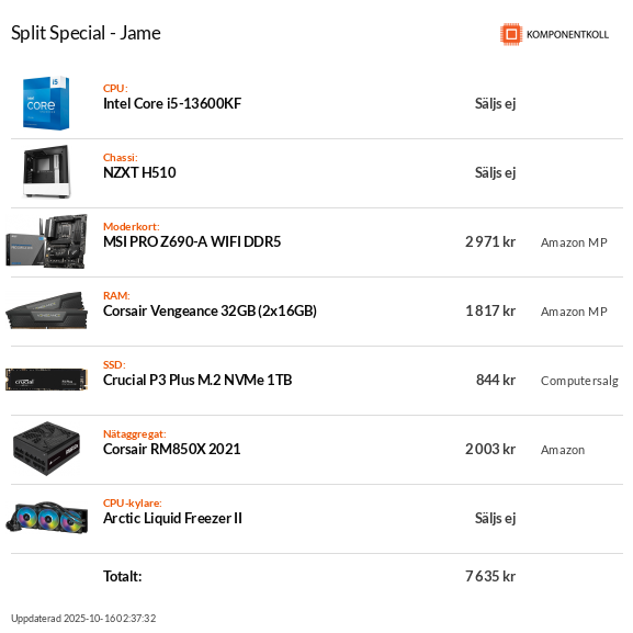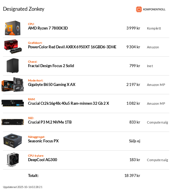 I summan ska endast den faktiska datorn ingå, alltså processor, grafikkort, RAM-minne, moderkort, chassi, SSD-disk, nätaggregat och processorkylning.
