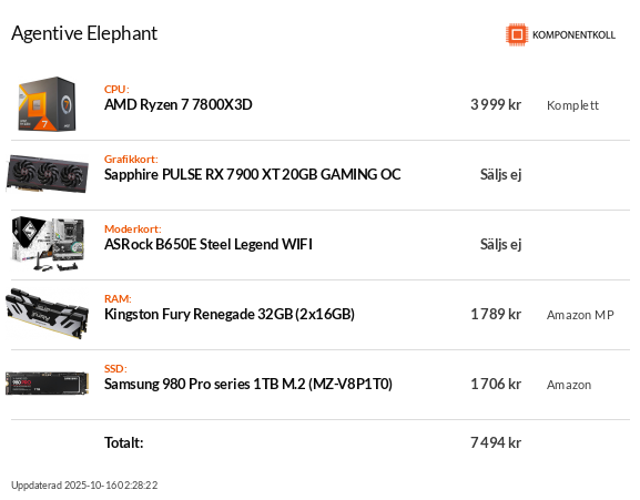 Även om jag nog hade kunnat spara någon tusenlapp på GPU respektive CPU genom att köpa begagnat som @HickeHiskelig föreslog, så känns det som att smidigheten med att köpa i butik får vara värd typ 10% på priset den här gången.