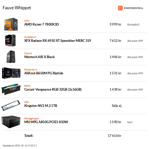 🗄️: Stronghold 🔌: RM650 (2019) 🎞️: 32 GB DDR4 3200 MHz CL16 💾: CS3030 1 TB
