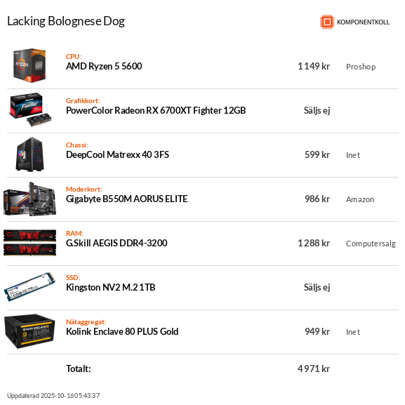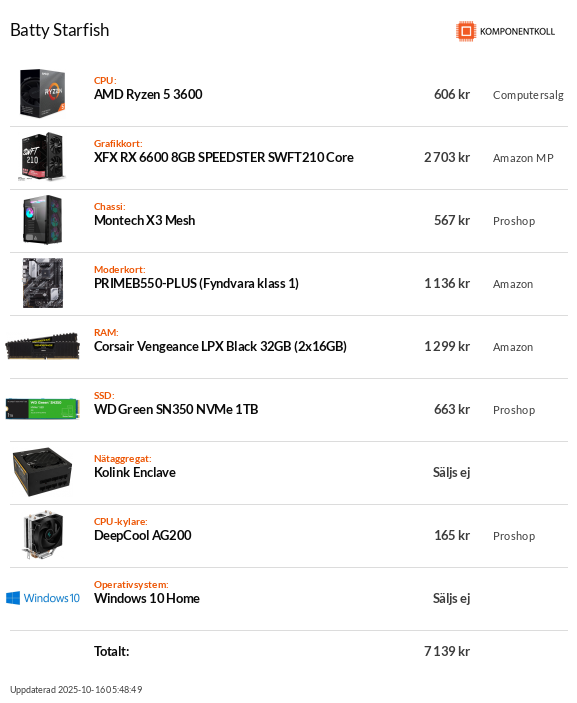 Men om du vill bygga själv kan du få en med 1tb och 6650 xt dom är lite bättre för samma pris.