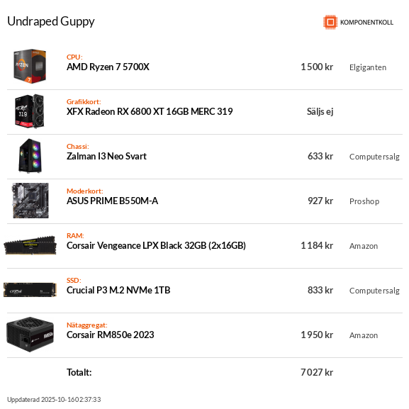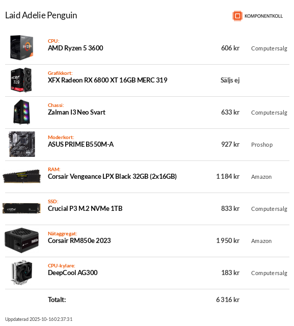 *5800X|GB B550M Aorus Elite|32GB 16+16 Corsair LPX/Kingston(naken) 2133C15/2133C13 HynixAFR DR @3200C16|Asus RX7800XT OC|Seasonic GX750W|Thermaltake V21|Arctic II 280AIO|Samsung 980 Pro 2TB NVMe|Acer XV272Uz 1440p 240Hz|MinuxLint på Kanelen