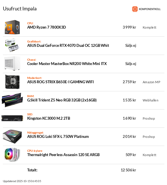 CPU: R7 9800X3D | GPU: Asrock 7900XTX Taichi OC | MB: Asus B650E-I| RAM: 2x32 Kingston Fury @6000MHz CL30|Cooling:Noctua NH-D15 G2|PSU: Phanteks AMP GH Platinum 1000W|SSD: Kingston Fury Renegade 2TB + Corsair MP510 4TB |CASE:Streacom DA6 XL Chrome