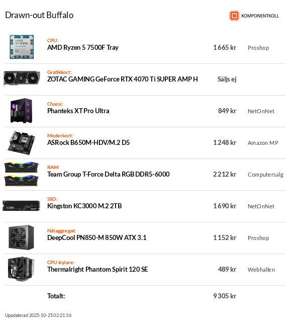 PC: i5 12400F || RTX 3060 12GB || 16GB (2x8) 3600MT/s DDR4 || 500GB M.2 NVMe SSD || Kingston SATA SSD:s (1x 480GB, 1x 960GB)||