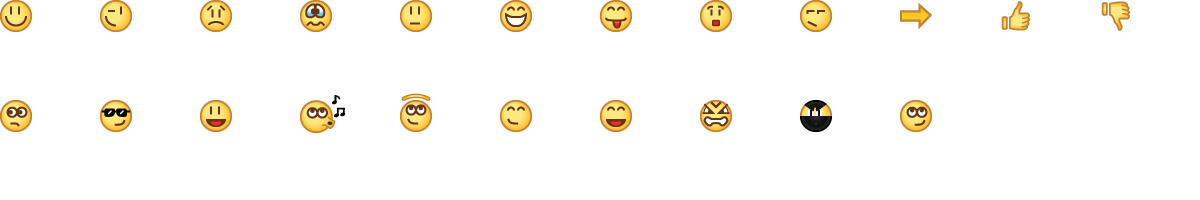 Jag vill ha/behöver en lista på bilder på alla emojer som går att välja på. Jag kan inte och kommer inte ihåg sådant i huvuden tyvärr.