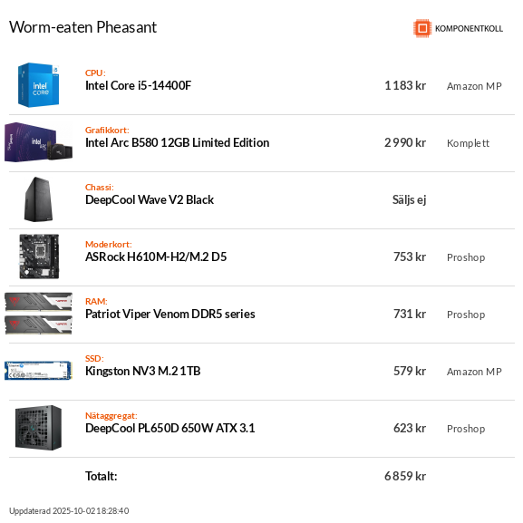 *14400f|GB B760M D3HP|64GB 2x32 Corsair LPX 2666C16|B580|RM650e|Phanteks Ultra|MSI CL A13 360AIO|1TB NVMe Crucial P310|Sony 720p 60Hz