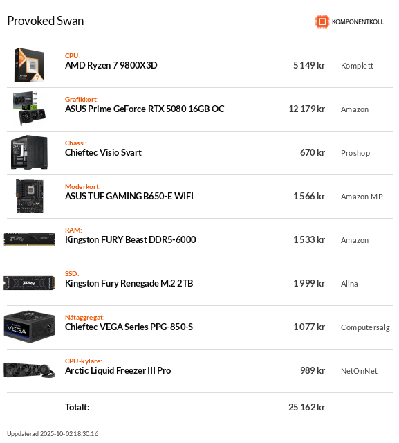 Kikade på denna lista du gjort. Har du behov av 64gb ram? Du behöver inte ett 1000W nätagg för 9800 & 5070ti eller 5080.