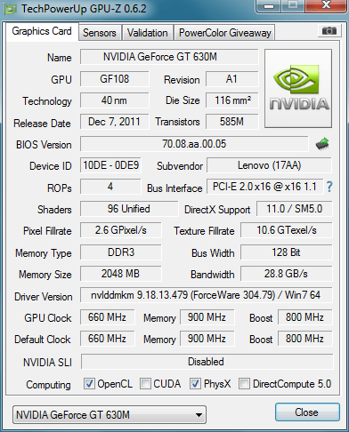 Bärbar: Lenovo ThinkPad Edge 530 | Intel core i7 Ivy Bridge 3612QM 2.1 GHz | Nvidia Geforce GT630M 2048 MB