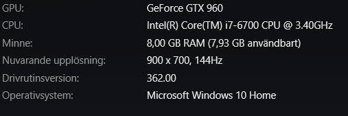 Min dator: Silent Base 600 | 1700X @ 3.9Ghz | MSI Gaming X 1080TI | RM750X | 512Gb M2 | 16Gb 3200mhz Ram | S34E790C @ 3440x1440