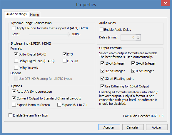 Och bocka i de format din förstärkare klarar avkoda under bitstream