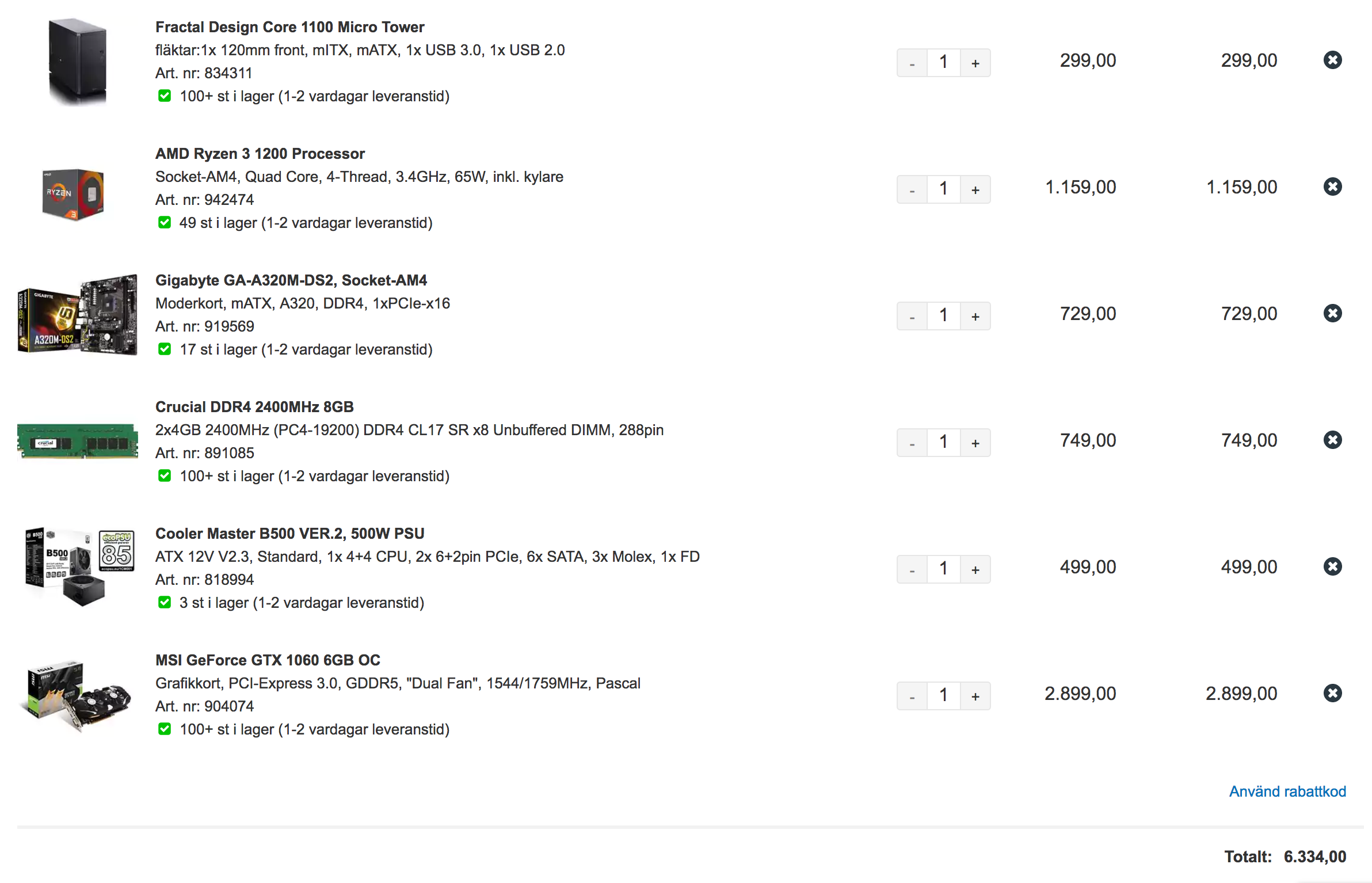 Processorn kommer inte vara en flaskhals med ett GTX 1060, du kan med gott samvete ligga kvar på en Ryzen 3 1200.