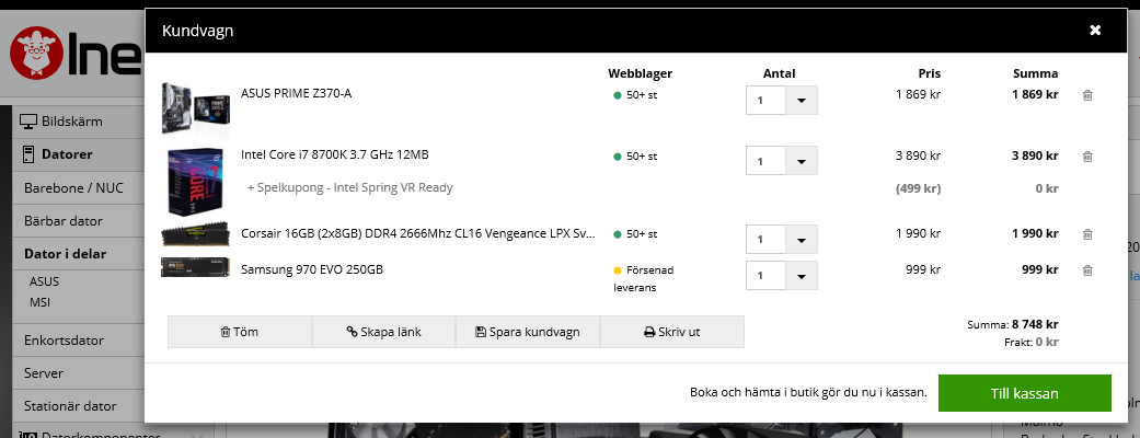 MOBO: Gigabyte B550M DS3H, CPU: AMD Ryzen 5 5600, RAM: 4x4GB @ 3000MHz, GPU: RADEON RX5700, SSD: WD BLACK SN750 SE 1TB Chassi: NZXT H410i, PSU: Corsair RM1000e, Skärm: Philips 27M1N3500LS.