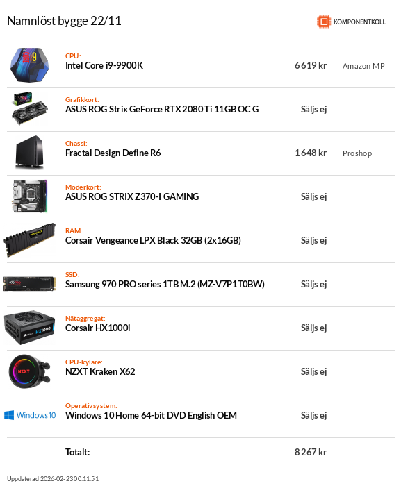 AMD Ryzen 7 5700X, ASUS ROG Crosshair VIII Dark Hero, 32GB Corsair Vengeance LP 3200MHz, Gigabyte Radeon RX 5600 XT, Fractal Design Pop XL Silent, Sesonic FOCUS PX 650W.