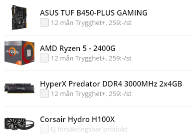 Det som jag tänkt köpa är: