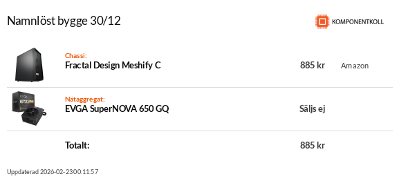 CPU: Ryzen 5 5600 | GPU: ASUS RX 6700 XT | RAM: 16GB 3000MHz DDR4 | Mobo: ASUS B550-Plus | Lagring: 2x1TB SSD | Chassi: Fractal Meshify 2 | PSU: EVGA Supernova G6 1000W |