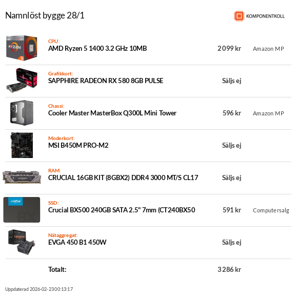 | Fractal Design Core 1000| Ryzen 1600 @3.8Ghz | Asus PRIME B350M-E | Xilence M403 | MSI GTX 1060 6GB | 16GB DDR4 @ 3000Mhz | Cooler Master G550m 550W | Windows 10 Pro | OCZ TL100 240GB | Hitachi 1tb |