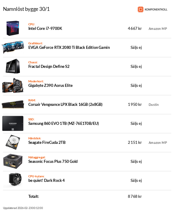 Intel 9900K, Aorus master, g.skill 3200mhz 16gb,Lian li dynamic,Corsair Masterliquid ML360R RGB,ssd 970 1TB, ssd2 970 500Gb, 1080 TI gigabyte. Corsair 850W Vit.