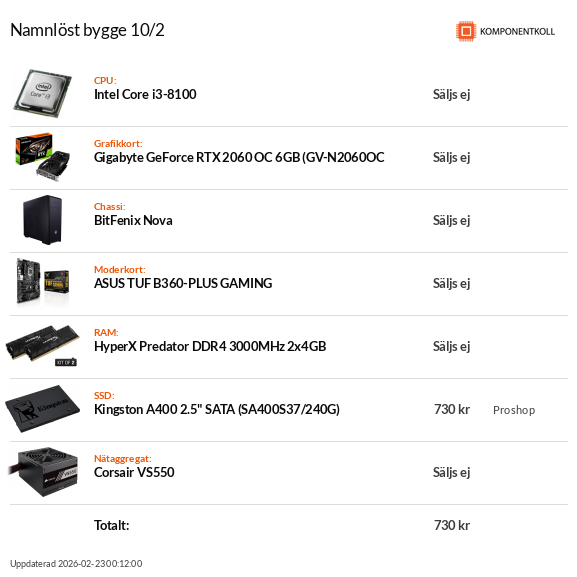 Ny dator i3-8100, rtx2060, vad tycks?