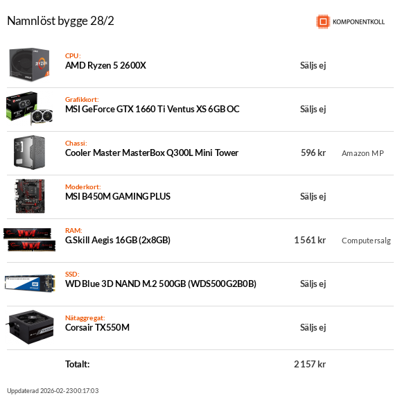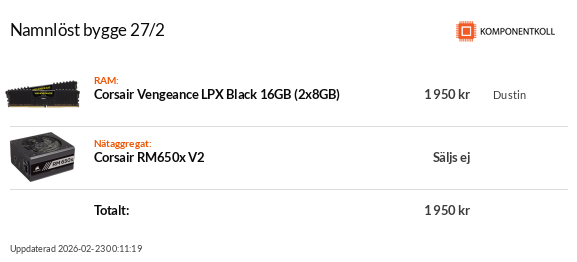 CPU: i9-9900K + Be Quiet! Dark Rock Pro 3. Moderkort: ASUS ROG Z390-F. Minnen: Corsair Vengeance DDR4 2x8GB 3000MHz. GPU: GigaByte RTX 3080 Gaming OC. SSD: Corsair MP510 500GB. HDD: WD Blue 3TB Nätagg: EVGA SuperNova G2 850W. Chassi: Corsair 4000D Airflow.