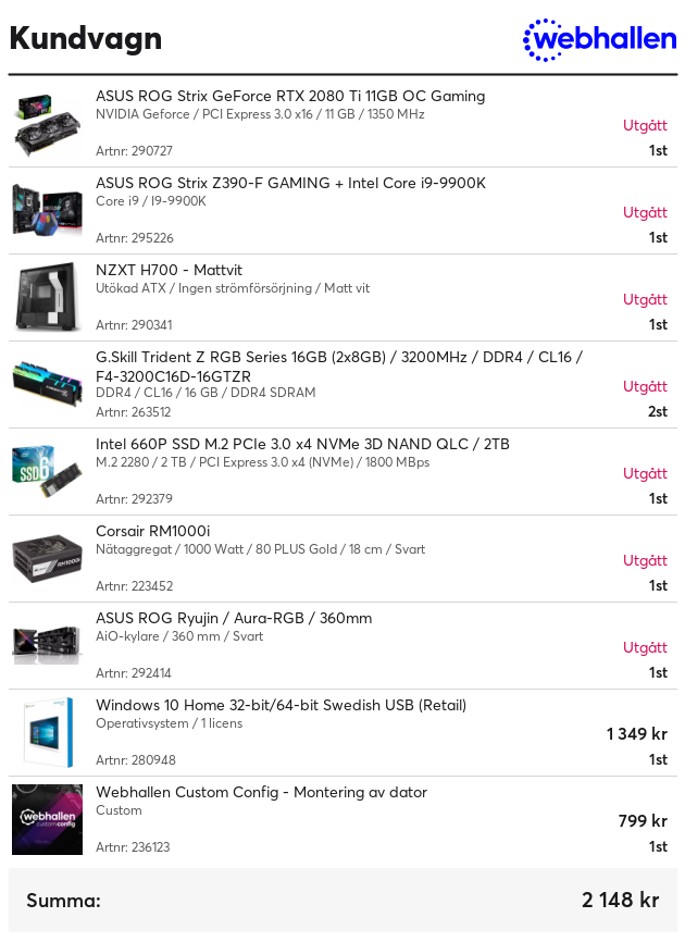 Intel 9900K, Aorus master, g.skill 3200mhz 16gb,Lian li dynamic,Corsair Masterliquid ML360R RGB,ssd 970 1TB, ssd2 970 500Gb, 1080 TI gigabyte. Corsair 850W Vit.