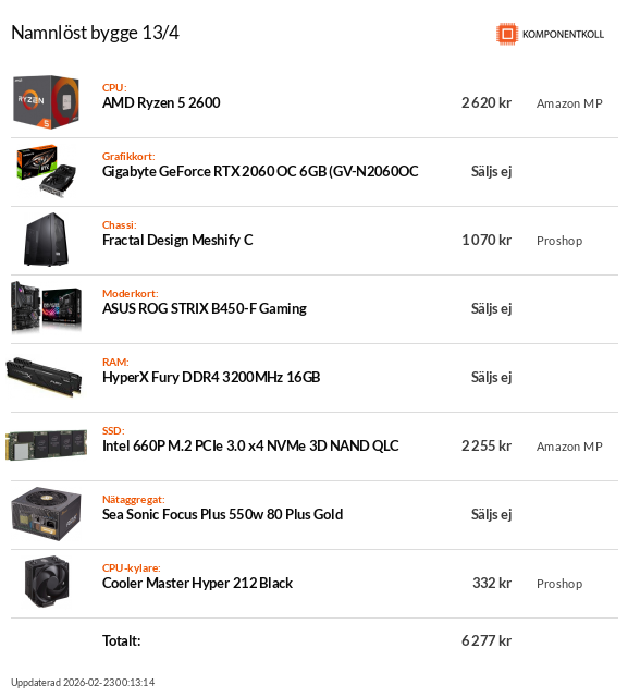 AMD Ryzen 5 2600 4ghz, Gigabyte rtx 2060 OC, NZXT H400i, MSI B450M MORTAR, 16gb ddr4 3200mhz, Kingston 240gb ssd, WD blue 1tb 7200rpm, EVGA GQ 650W, Cooler Master Hyper 212 Black Edition