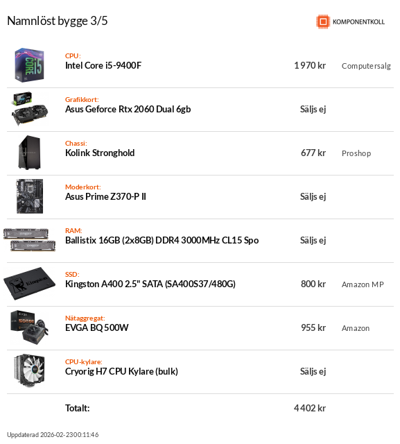 Komponentkolls 10k dator kostar 10,6k om man väljer att ta allt från Inet.