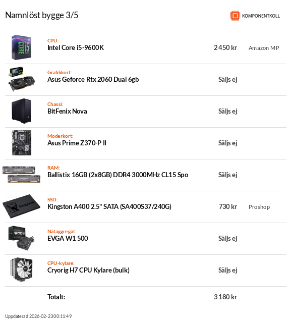 Ett exempel med en 9600k så nära budget som jag kunde gå och ändå ha kvar en stabil grund: