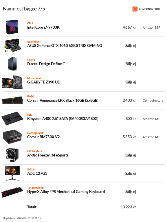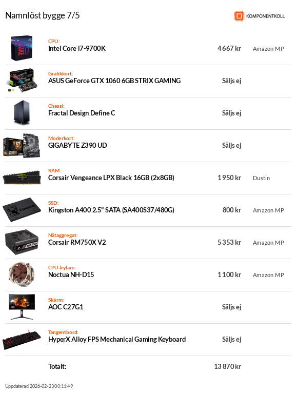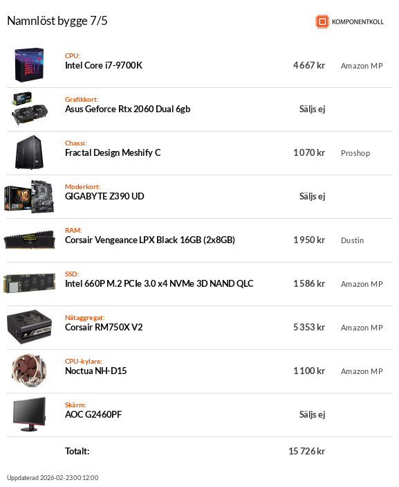 Intel 9900K, Aorus master, g.skill 3200mhz 16gb,Lian li dynamic,Corsair Masterliquid ML360R RGB,ssd 970 1TB, ssd2 970 500Gb, 1080 TI gigabyte. Corsair 850W Vit.