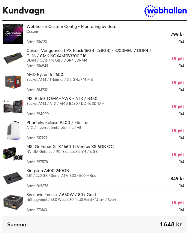 - Köpes Lga 1700 ITX MB, CPU & RAM