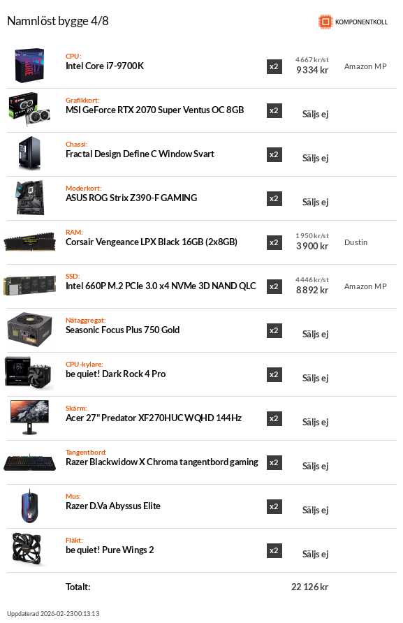 Ryzen 9 3900x | MSI X570 Gaming Pro Carbon WIFI | Corsair 32GB Vengeance RGB PRO | MSI GTX 1070 | Noctua NH-U12S Chromax Dual Fans | Seagate FireCuda 520 SSD 500GB | 2x Crucial MX500 2TB | 2x Crucial MX500 1TB | Seasonic Focus GX 750W | Mi Curved 34" | SteelSeries Apex 7 | Logitech G502 Proteus Spectrum | Logitech Z-623 | Windows 11 Pro |