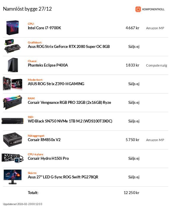 Jag tänker mig alltså en dator för främst kontorsbruk med relativt stor arbetsyta (27 tum, 1440p) som också kan maxa spel under överskådlig framtid och där systemet inte blir en flaskhals för skärmens 144hz i FPS-sammanhang (även om shooters inte utgör merparten av mitt spelande). Jag inser att budget är overkill och att jag skulle kunna få detta för typ halva prislappen, men villhöver ett system åtminstone i RTX 2070 Super-klassen den här gången.