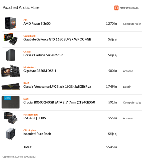 CPU 3300X om du kan hitta eller för all del R5 3600.
