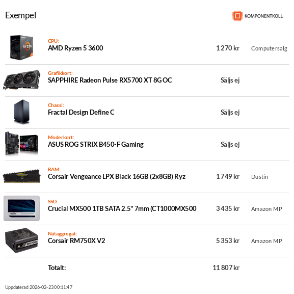 AMD Ryzen 7 3700X | EVGA GeForce RTX 3080 10GB FTW3 ULTRA | ASUS ROG Strix B450-F Gaming | Corsair RM750X V2 | Crucial Ballistix Sport LT 3200MHz 16GB | Samsung 980 Pro 1TB | Crucial MX500 2TB | NZXT H500