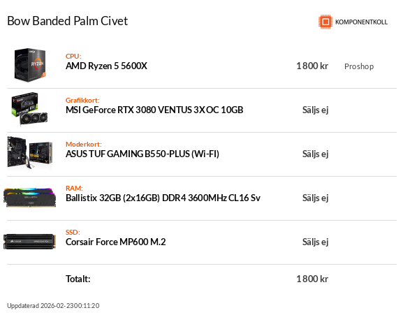 Nedan kommer en lista med redan betalade och beställda komponenter, gissar (snarare hoppas) på leverans inom kanske 1 månad.