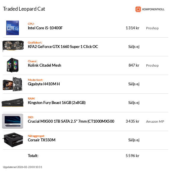 Satt på komplett och fibblade lite, med den du satte ihop som grund och kom fram till något sånt här: https://www.komplett.se/wishlist/shared/e5482842-43a8-44c6-a6...