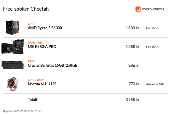 RAM: 32GB DDR4 3200MHz. HÅRDDISK: 4 st SSD, 2 Mekaniska.