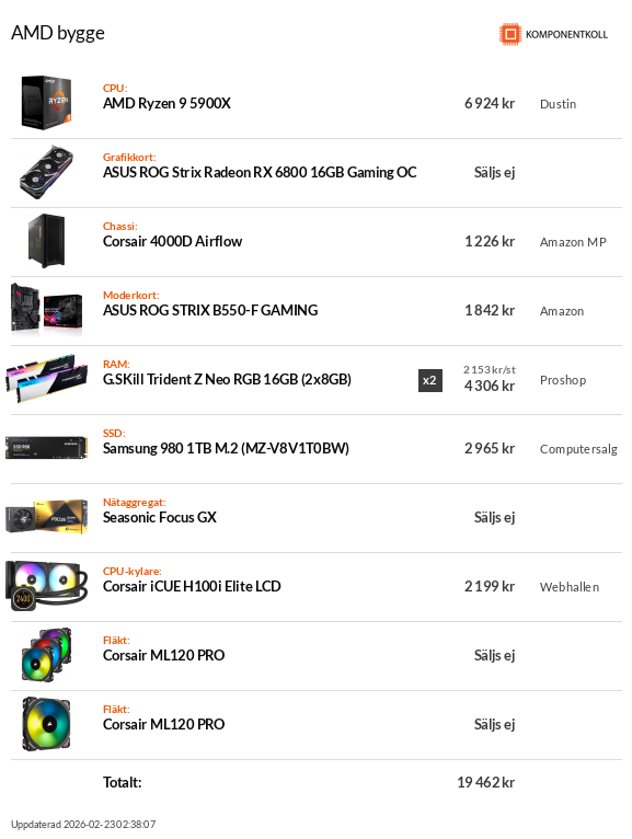 Som många sagt, om RGB är viktigt för dig så se till att köra hela skiten i samma mjukvara. Jag har provat alla och tycker iCue är bäst (Corsair). Corsair gör också de bästa vattenkylningarna. Har provat NZXTs, Ruijun 360, alla Fractal, etc - Corsairs är bäst. Om jag var tvungen att välja en AIO som inte är Corsair skulle jag välja en Asus Ryujin 360, den är också bra men Corsair är bäst. Det bästa med Corsair är att de har låga ljudnivåer och att de har sensorer för vattentemp, vilket jag tycker är det viktigaste. Ryujin 360 har inte det (kanske den nya iofs som precis släpptes, men den kostar 4k och då kan man lika gärna köra custom). Alla dom här skälen gör att jag rekommenderar AIO från Corsair och fläktar från Corsair, om du måste ha RGB på dina fläktar.