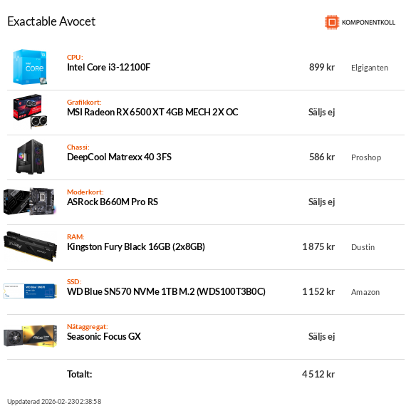 AMD Ryzen 5(Zen3) @4891|Asus Prime|Corsair 2x16 RGB PRO 3200C16 @3800C18|Intel Arc LE @2740MHz|Seasonic Focus| Thermaltake mATX kub|Arctic freezer II| NVMe SSD PCIE 3.0x2 Kingston A1000 1500/1000 + 2,5" HDD Toshiba 1TB & Samsung 1TB i RAID 0.