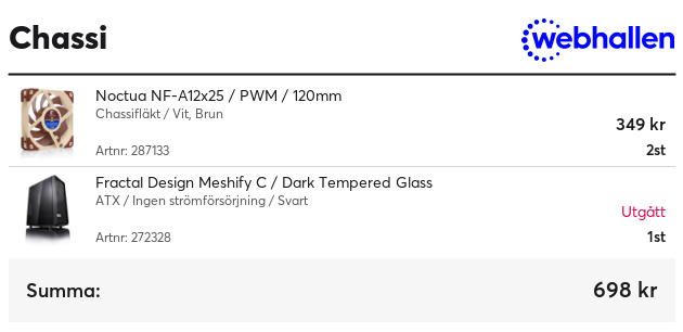 R7 5800X3D / RX 6950 XT / 32GB Ram / 1TB SSD / X570 Bräda / 850w Nätagg.