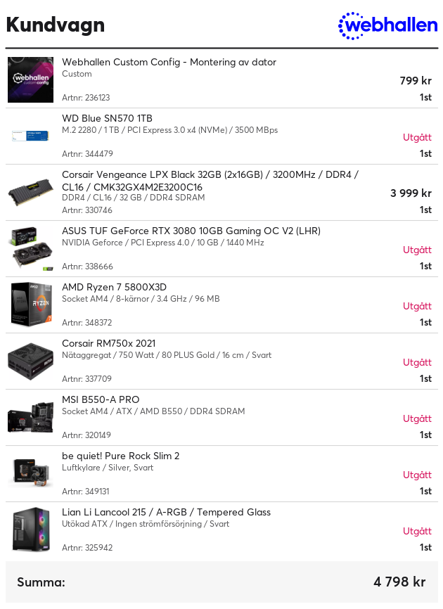 RTX 3080 Ti | Ryzen 5800X3D | B550 | 32GB 3600 MHz | 1000W | W.11