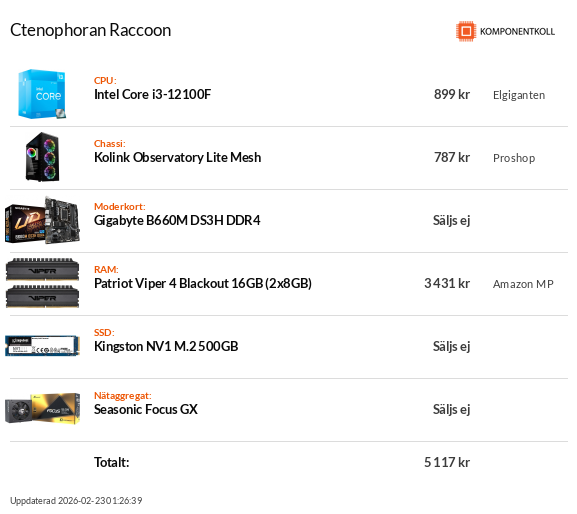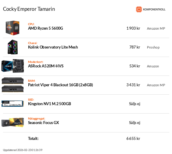 Jag själv är ju en övervintrad "retrogamer" som inte hållit på med moderna grejor, så jag får klassa mig som noll koll på just det, men eftersom jag var spelutvecklare på 90-talet, byggde ihop massa datorer då och har mekat med sonens dator i närtid så är jag inte orolig att skruva ihop nåt... Men jag behöver tips om ovan är vettigt köp eller om jag ska lägga till pengar på nån av posterna eller välja ett annat koncept än detta Ryzen med integrerad grafik? Jag spelar inte spel själv så jag har bara gamla surdatorer (förutom jobbdatorn som jag inte styr över själv).