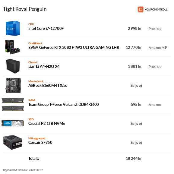 Har valt DDR5 då prisskillnaden inte blir så stor i och med att de andra attraktiva B660 kort som finns med DDR4 kostar mer än ASUSen