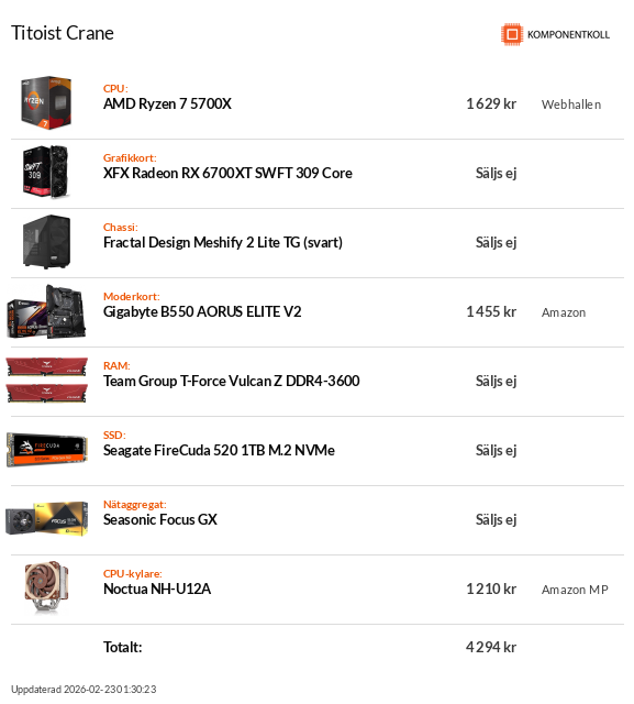 Här är ett bra bygge. Allt finns i lager och borde gå att få hem under nästa vecka. Minnena är B-die och finns hos Proshop.