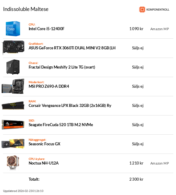 Intel/Nvidia alternativ utan Amazon, dock bara med en 12400F: