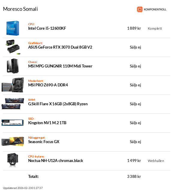Hur skulle ett bygge med 12600k och 3070 se ut isåfall? På en 16-17k max budget.