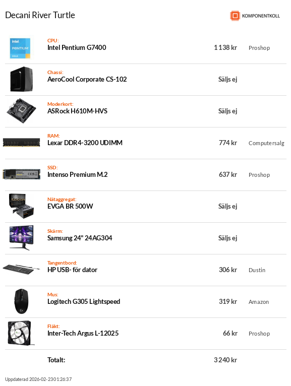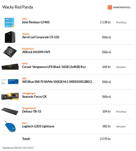 Du kan dock få ett stort hopp i prestanda om du lägger till någon tusenlapp. Det blir ju mycket avtagande avkastning när man bygger billigt, men mer prestanda är knappast något han kommer behöva. Annars är väl en extra 8GB ramsticka och en i3 det man ska satsa på om man vill spendera mer.