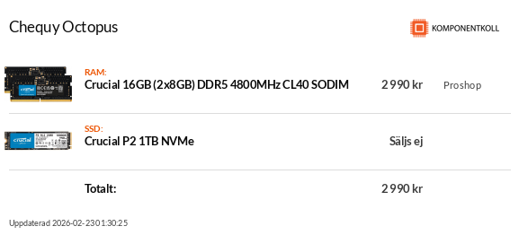 Okej då behöver du kanske en ny SSD men imorgon lanseras det och det är inte upplagt hos någon ännu utan exakt pris får vi förmodligen under morgondagen då får vi se exakt vad vi kan skapa med din budget eller om det är för tight och få med det.