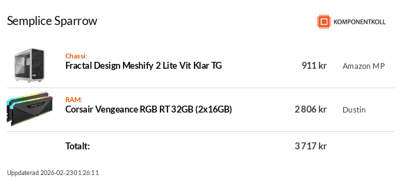 Chassi: Fractal Design Meshify 2 Compact (1 630 kr hos Amazon)